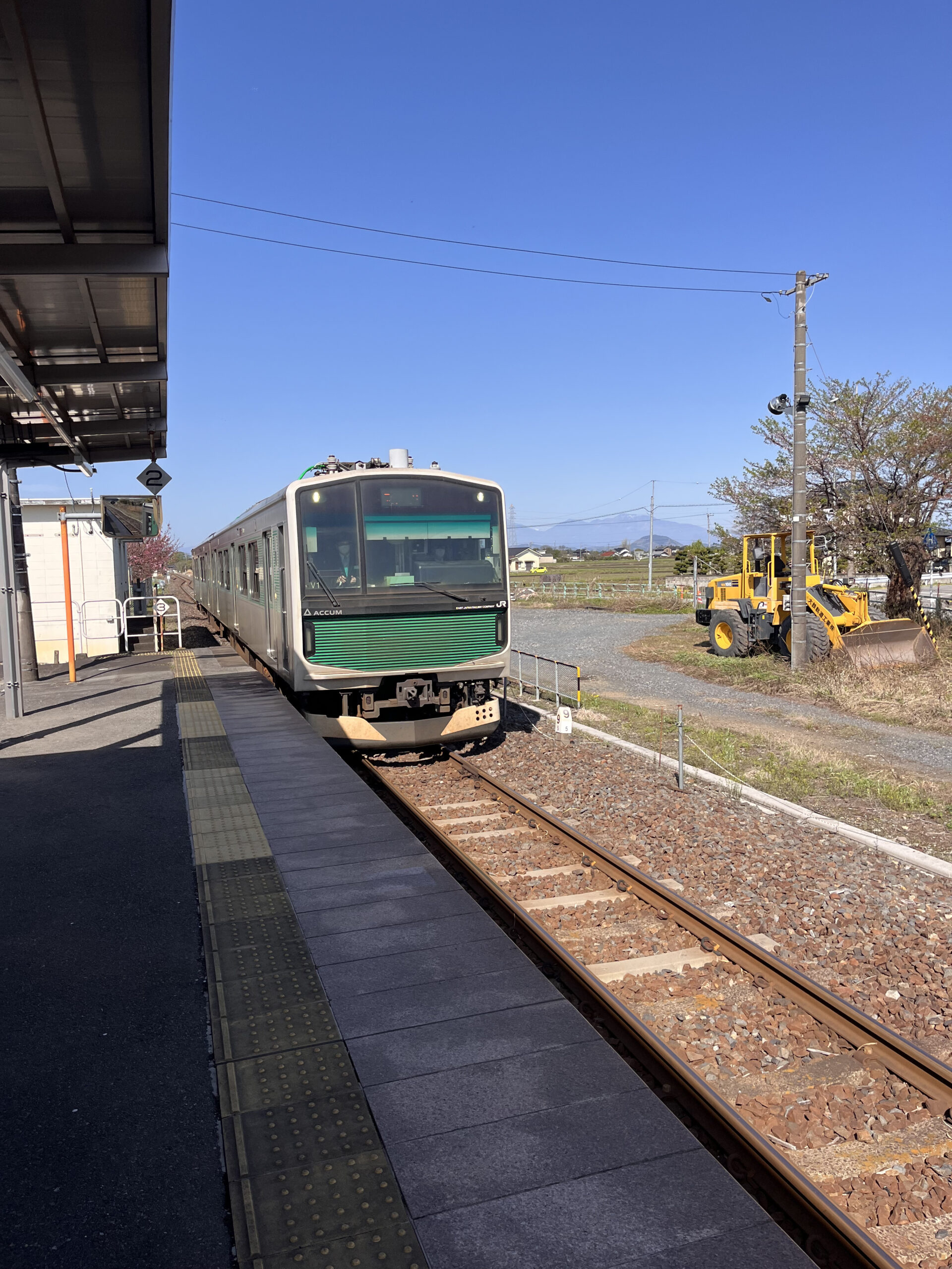仕方なく先頭車両へ移動して、のんびり景色を楽しむことに。春の田園風景が心地いい。こういう時間、いいよね。