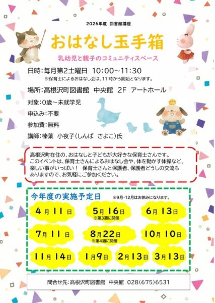 【栃木県・高根沢イベント情報】おはなし玉手箱や読書クラブ〜高根沢町図書館4月のイベントまとめ