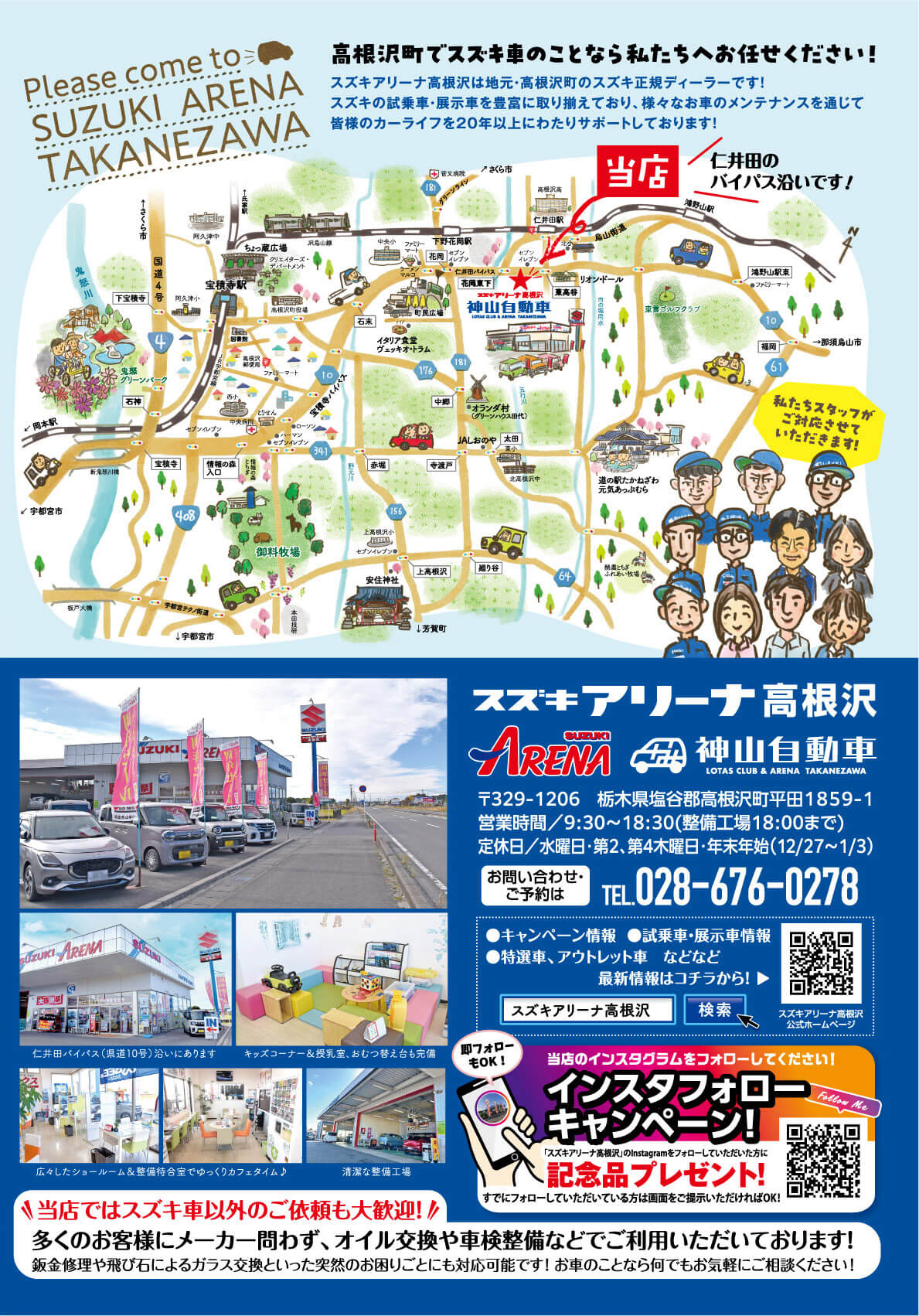 さらに、スズキアリーナ高根沢・神山自動車さんでは現在Instagramフォローキャンペーンも実施中!フォローすると(すでにしていただいている方もOK!)来場に記念品プレゼントもあります。