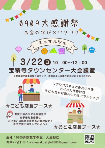 3/22(日) 0909大感謝祭 お金の学び×ワクワク ミニマルシェ