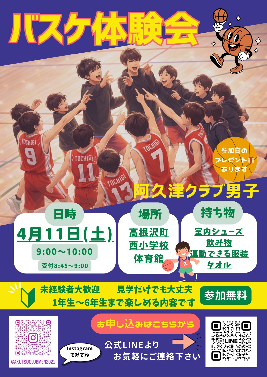 【メンバー募集】阿久津ミニバス(男子)が西小で4/11(土)出張体験会開催!この春からバスケはじめよう!