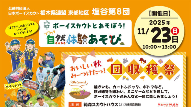 【イベント情報】11/23(日)さくら市で「ボーイスカウトとあそぼう! ワクワク自然体験あそび」開催